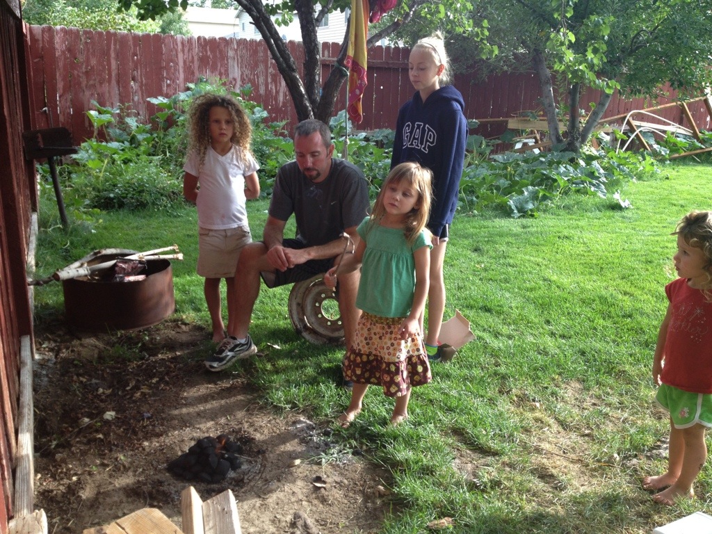 We were outside hanging out with our friends, eating dinner and making Dutch oven apple crisp when I looked over and saw Danica playing with one of the chickens…