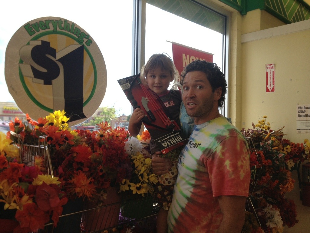 They went to the $ store and picked out a bow and arrow and a toy knife. They came home and the fighting started…