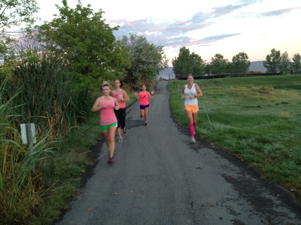 They are getting ready to start their 1200’s! My 1st one was a 4:14, 2nd was a 4:11, 3rd was a 4:05, 4th was a 4:07, 5th was a 4:11, and 6th was a 3:56. I was tired! We then ran a 20 min cool down run. I feel better now that that work out is done! Thanks ladies for doing these with me and pushing me!