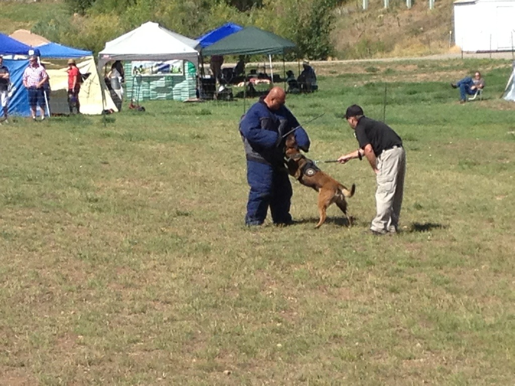 Next it was the K9 (police dog) demonstration. That was fun to watch. The police officer was trying to pull the dog off but the dog would not let go until he gave a certain command.: