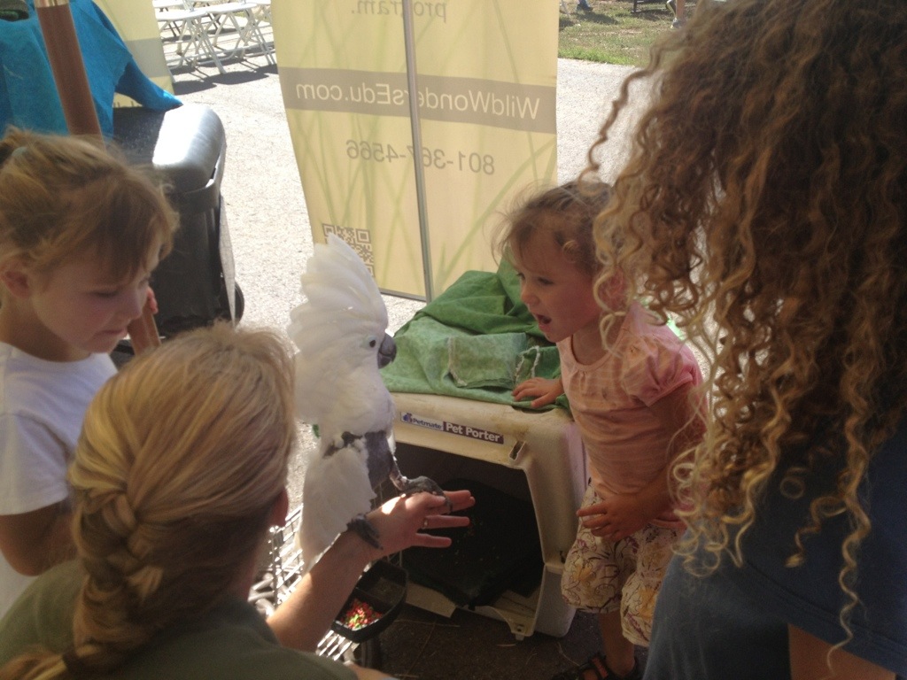 We came upon “Wild Wonders”. It was fun seeing them there because we actually had this couple come to our house for our daughter’s birthday party. They rescue and raise wild and exotic animals. They are a non-profit organization and raise money to take care of the animals by doing shows, parties, etc. (Their website is wildwondersedu.com). Coco their bird was a riot: