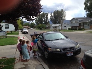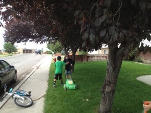 For scouts today, the boys had to mow a lawn and wash a car… Well my lawn got mowed and the other scout leader, Camille had her car washed… I love my calling in scouts. 🙂