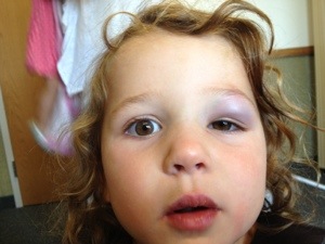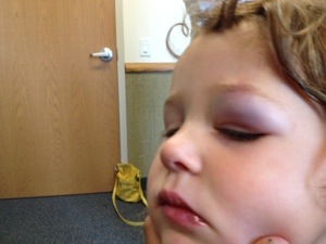 My Sunday morning was a little crazy (but I guess normal). 2 girls spilled their milks on the floor within 5 minutes of each other, the 2 older ones had the dog that we are watching (Scout) half way in the tub with them (good thing I stopped it before she fully got in), my youngest and Scout collided with each other (that is the picture above) – she has a big black eye, and they were so hyper at church… After we got home it wasn’t to different! A few friends stopped by for different reasons… But trying to man the kids without Corom at church is quit the chore. Thank goodness for wonderful people in our ward!!! Oh and this is Scout…