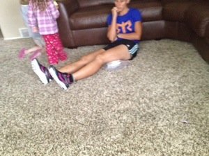 (4 year old again… Not bad.) The ice is burning my leg! I did run in my other new shoes… I like them. Thanks Runner’s Corner for the Sauconys (Flexfilm)!