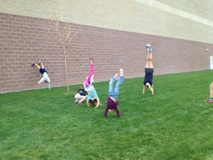 After speech, we (the girls and I) went to cross country practice. We sent the kids on a 35 minute run with strides. Some of the cross country runners went the extra mile and did an arm and core workout before and after their workout… My kids joined them to…