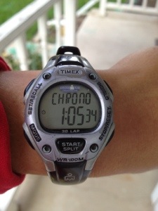 I dropped all the girls off at school and went on a nice 1:05.34 minute run. I felt good and had a good solid pace… I think. I felt like I could have kept going for a lot longer but I stopped for 3 reasons: 1) I read an article on active.com on the last 2 weeks before a marathon and the whole tapering thing. I am not a high mileage person to began with and when the article mentioned that 90% of people training for a marathon do too much 2 weeks before the marathon, it made me think that “yes it is okay to not go for a 15 miler”… I believe for most of us runners it is hard to back off mentally. It suggested to do 70-80% of what we normally do. 2) I started to feel my hamstring… It doesn’t hurt at all but I can feel it so I want to be smart. 3) I was close to my house and I have a real hard time mentally running past my house and having to go more… Anyway, back to my watch…I am old school with a watch that only does time, so I don’t know how far I ran. 🙂 I will get in the car to retrace my steps just to see the distance. One day I will upgrade my watch…