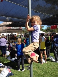 The girls playing in the gutter while we were waiting for Mike and Amy to return (Mike lost his car keys on the run somewhere :().