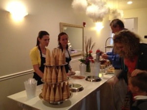 Corom and I both worked at the Clarion today (he came after he got off work but went to the other event in Bountiful that they were catering for). I went in at 2:30 and got home at 11:15 pm. I had fun working this event. It was an ice cream bar with all the works… I had so much junk food tonight! It was great. The bride and groom invited Thor tonight!!! That was nice of him to show…