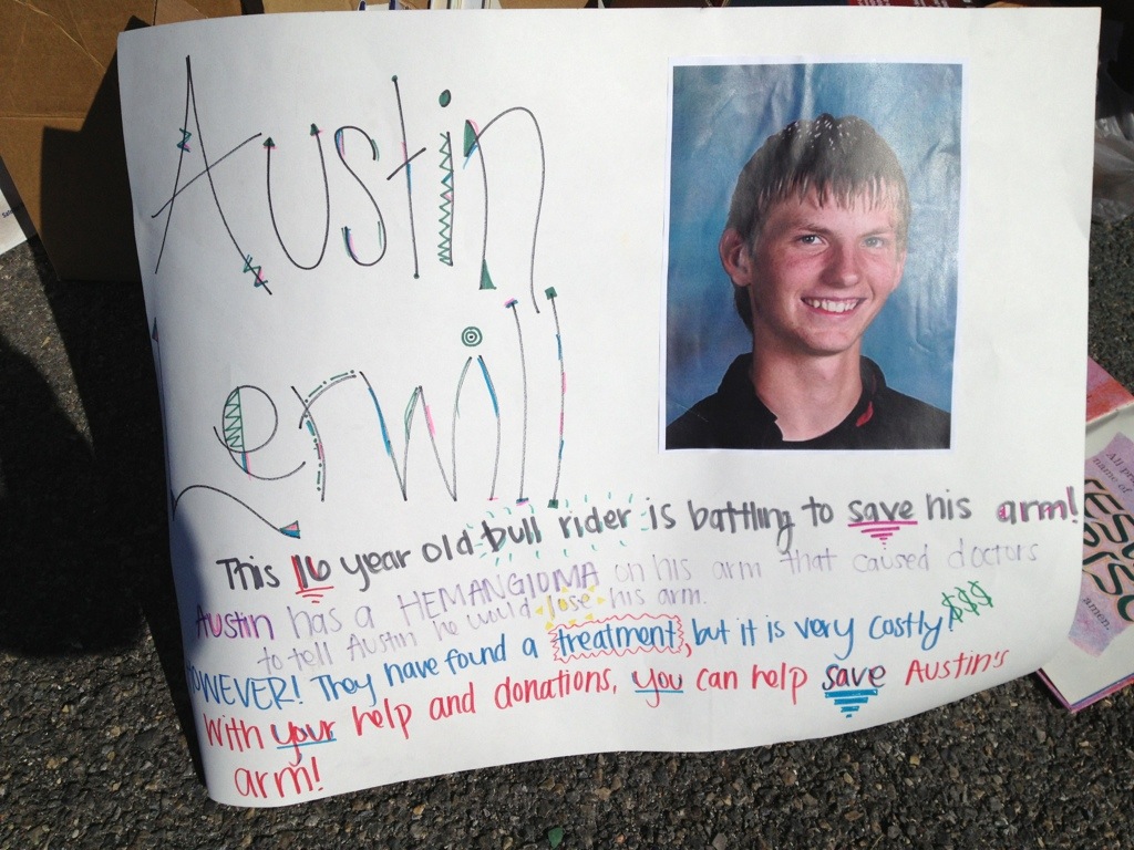 After the girls spent 2 1/2 hours in their rooms this morning (trying to get them cleaned), we finally were able to get out of the house for a few hours. We went to a fundraiser for a friend of ours, nephew. It was a bake, garage and lunch sell in Payson.