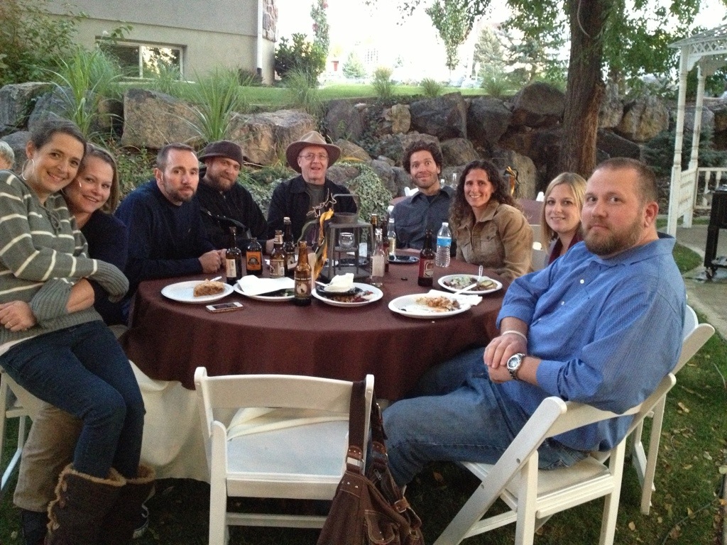 We went to the Clarion Manor in Payson for their all you can eat German food (Oktoberfest). It was so good!!! They had flattened steak wrapped around ham and pickles, brauts, salads, Spetzle with gravy (kind of like mashed potatoes but better), red cabbage (made sweet), sauerkraut, 3 different kinds of desserts, all sorts of different root beers, etc. It was great and a ton of fun.