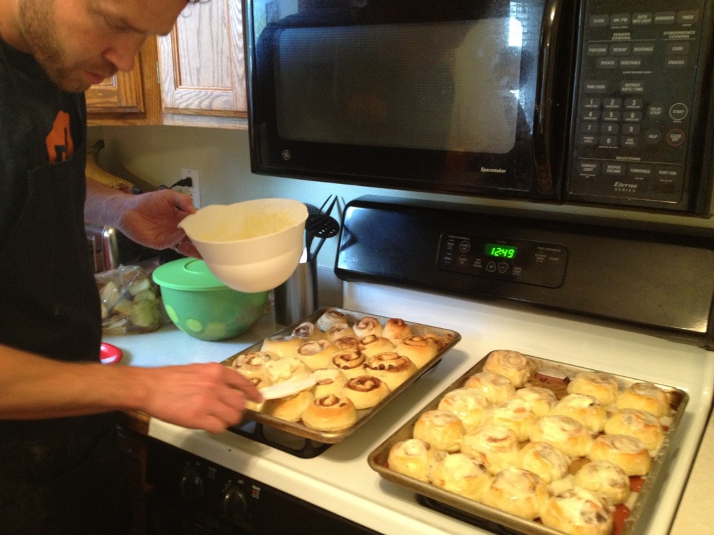 Corom decided to make cinnamon rolls this morning for “lunch” today.