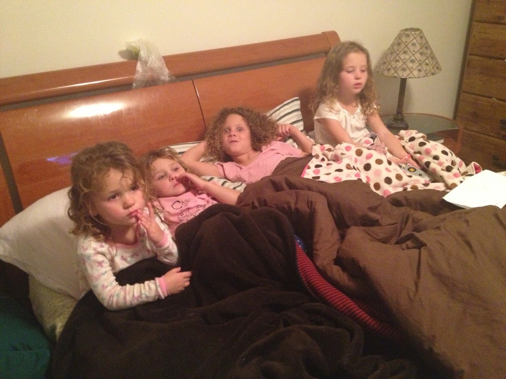 After church, we made shiskabobs for dinner and had the Barney family over (another new family in our neighborhood). We had a fun time. After they left our girls watched the last part of Sound Of Music.