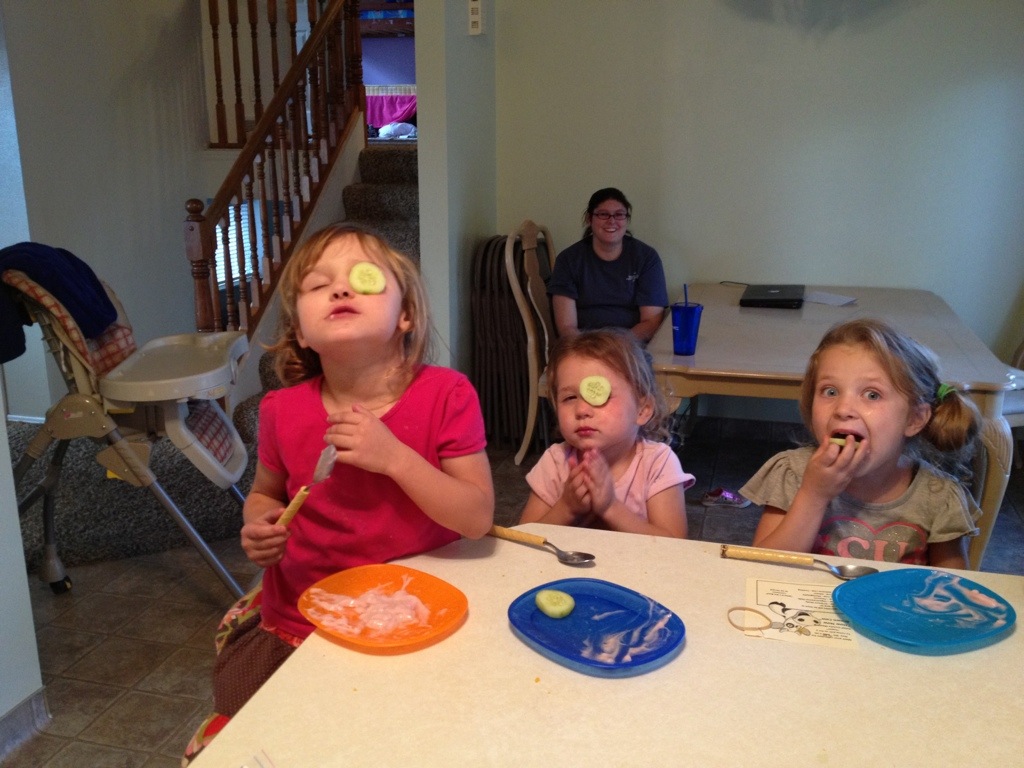 Part of dinner was sliced up cucumbers… Need I say more… A little bit later we went to our friends house (the Booth’s) for a little birthday celebration. Good company and good food and desserts.