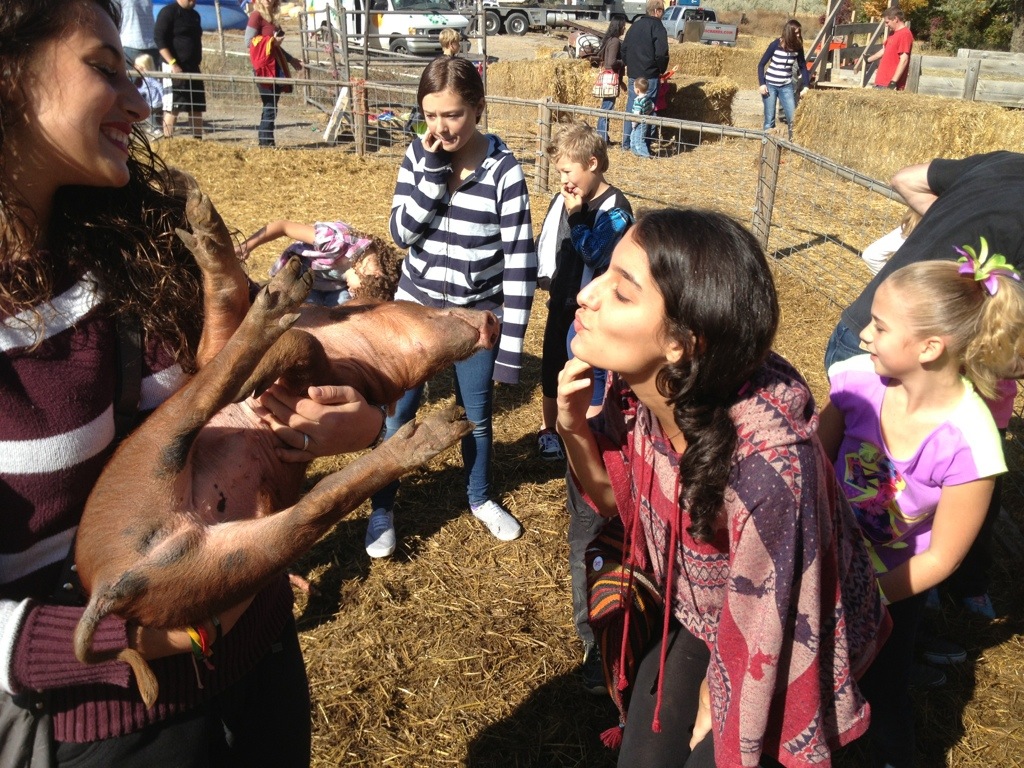 Corom on the other hand took the girls (minus my 2nd child… she went to a birthday party) and our Foriegn Exchange student and another Foriegn Exchange student to some pumpkin smashing, pig chasing event…