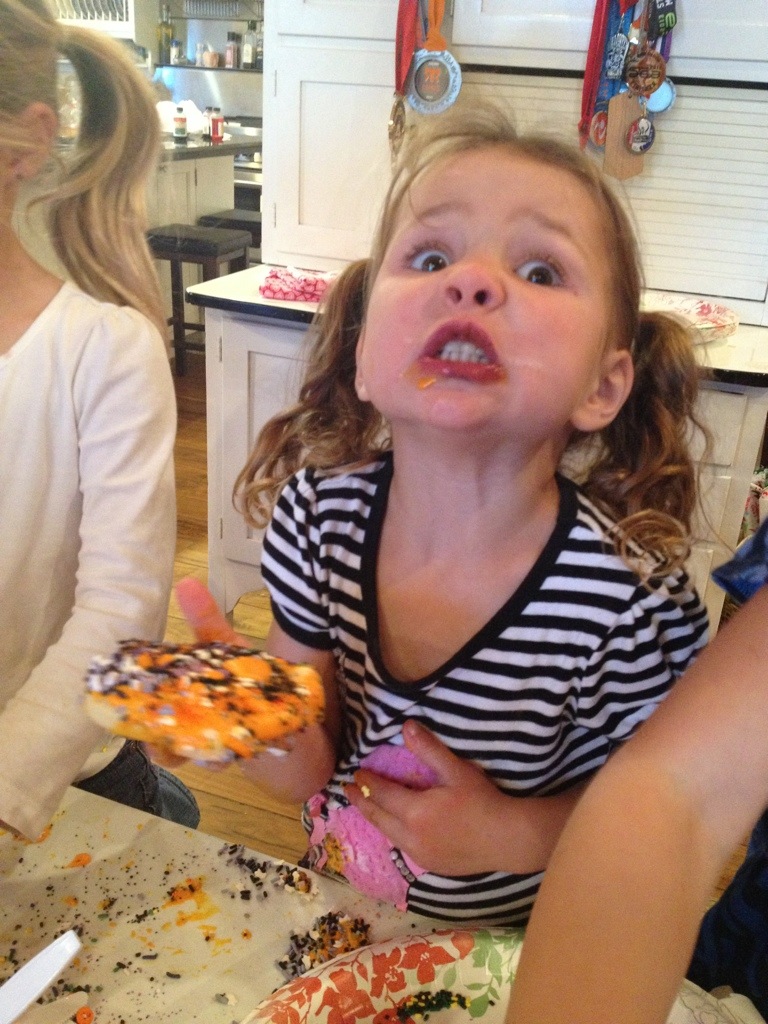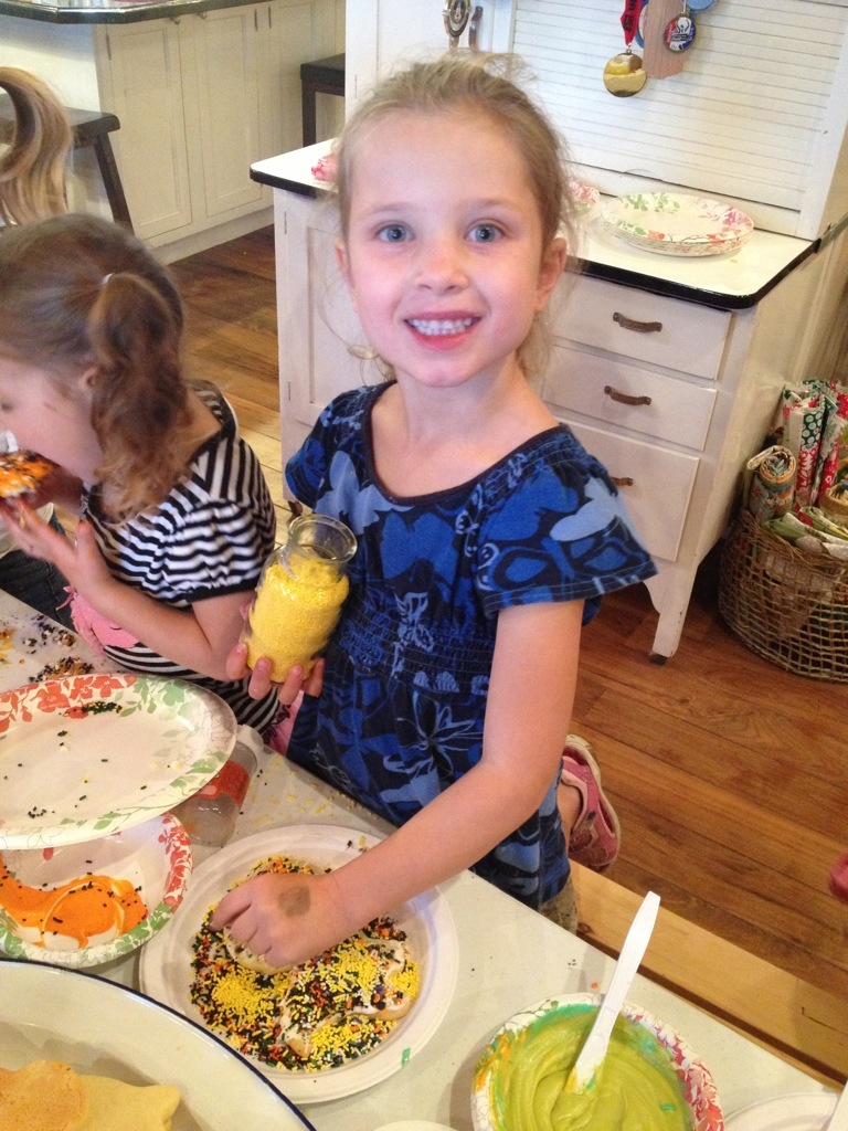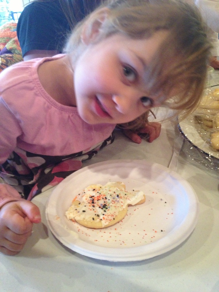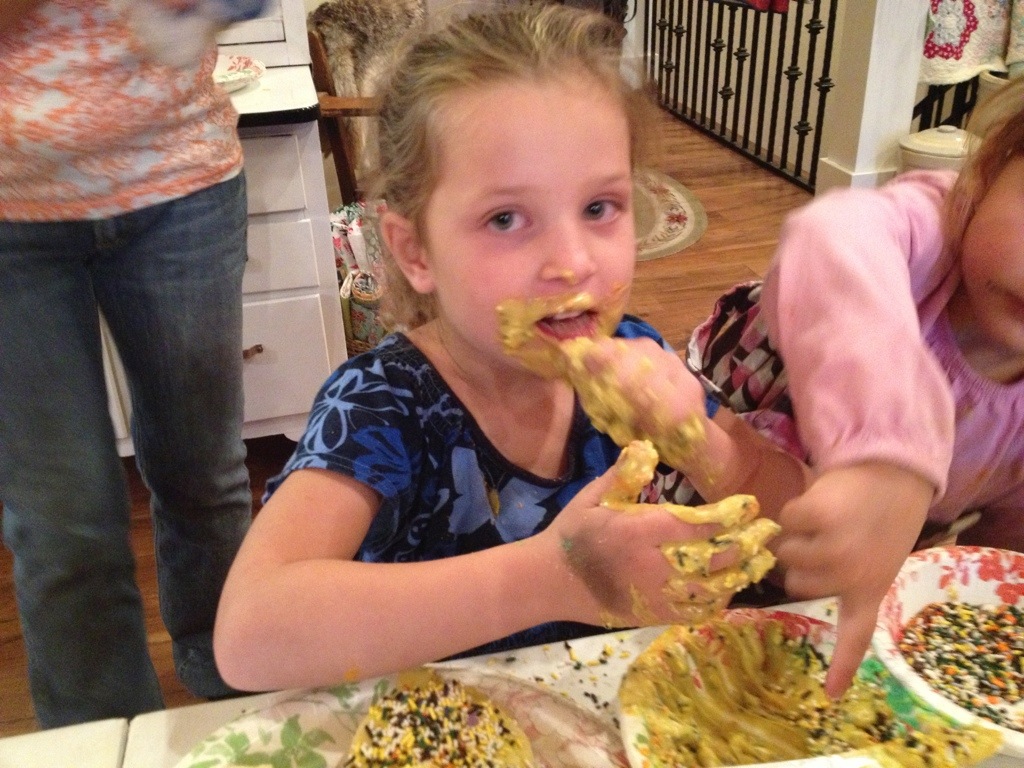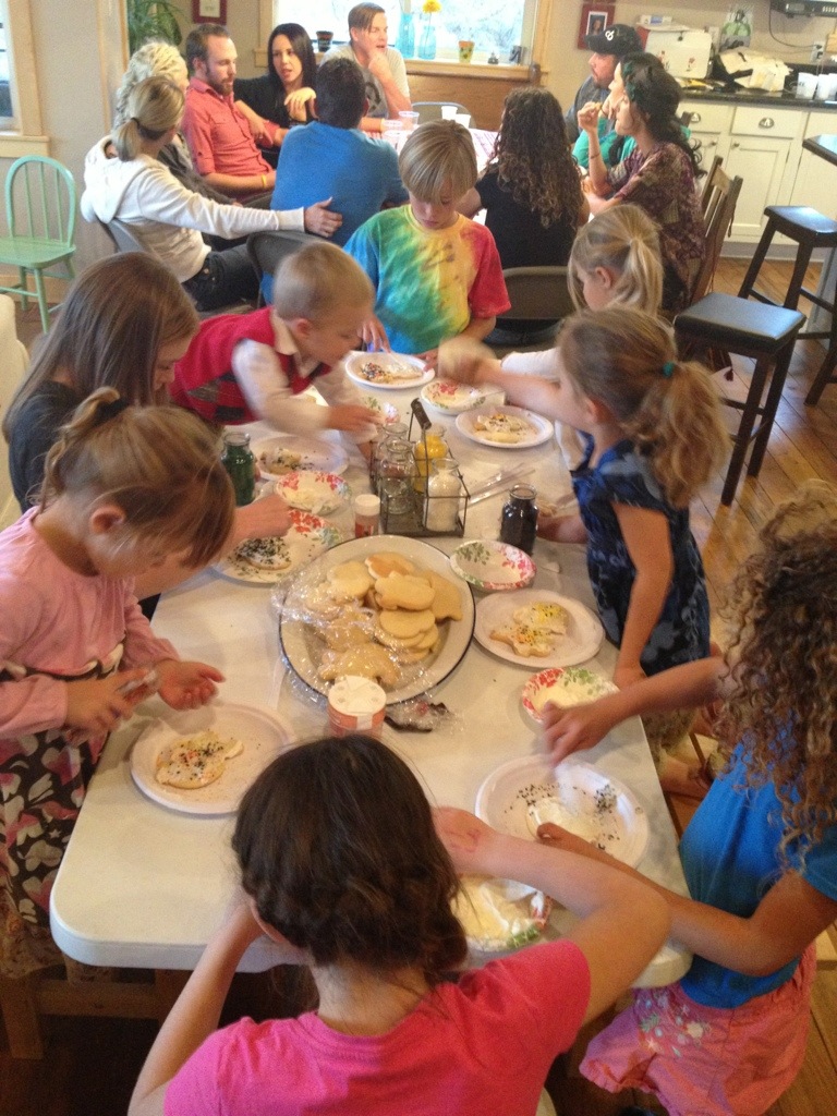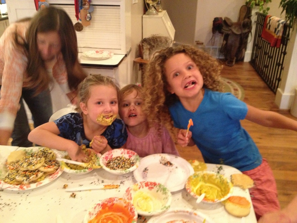 After church Corom, Z, the girls and I went up to my mother-in-law’s (Sarah) house for dinner and Halloween Sugar cookies! Corom’s sister, Yolanda & her family, Gary (Sarah’s boyfriend) and 4 of his kids and their families came to eat and decorate cookies… It all went well and we had fun getting to know one another.