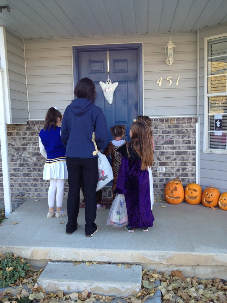 Last we stopped off at another neighbor hood and hung out with some friends…Their daughter (I coach her in cross country) and a few other girls and Z took our girls out even more door to door… What a night! We did carry 2 extra bags to collect candy for a couple of neighbor kids that could not go out this evening… So we did make a quick stop there. We didn’t get home until 9:30. I do love Halloween but I am tired! 🙂