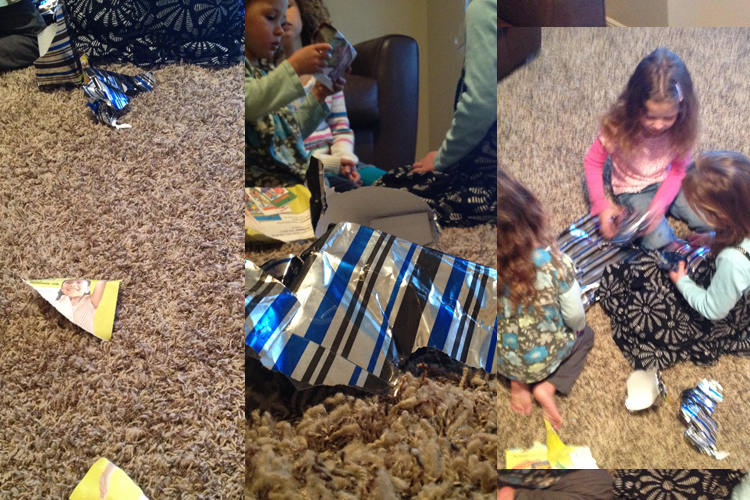 I told my 3rd that she could open 1 present this morning for her birth day. Well, that’s all I had to say and they were all on it. I asked them to wait so I could take some pictures but within 30 seconds they were all trying to open more.