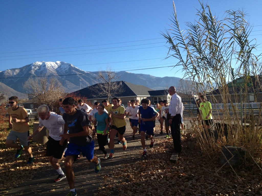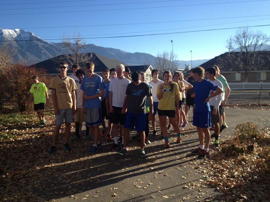 We (I mean they) ran 4 sets of this workout. They did a mile and a quarter warm up and a mile and a half cool down. They were beat! I do like it when they say I am mean and brutal!!!
