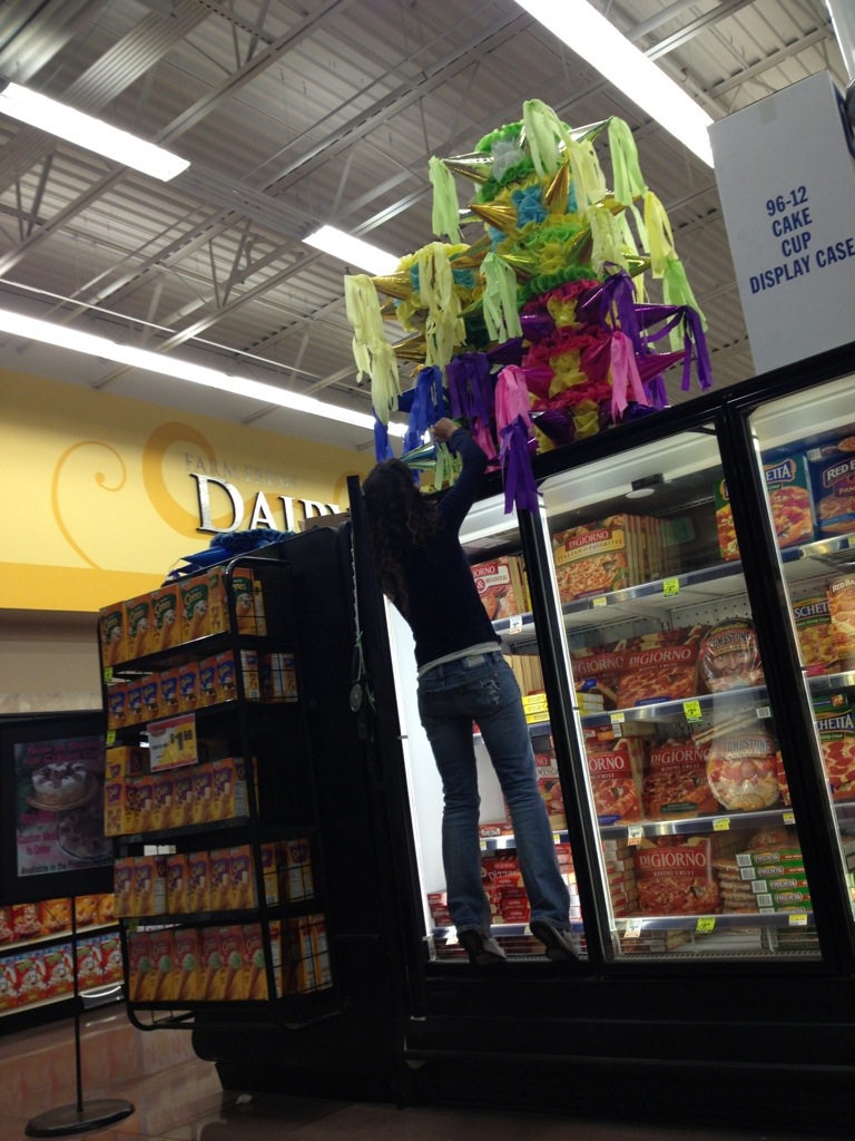 It is pretty impressive (or sad on my end) that my 5 year old can take better pictures than I can! We went to the store together to get her a piñata for her birthday party. Of course the piñatas had to be on top, stacked…