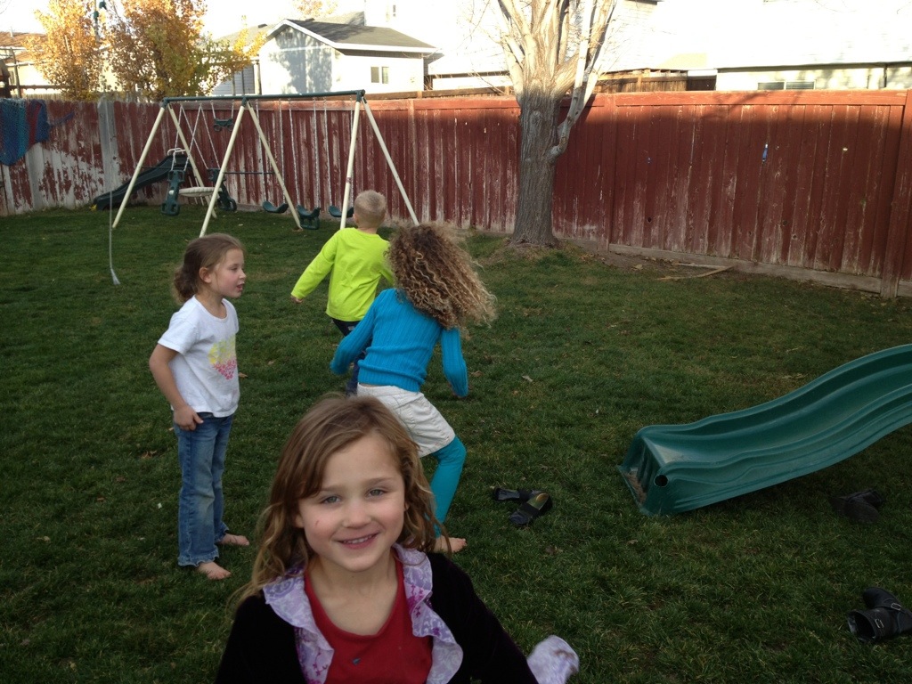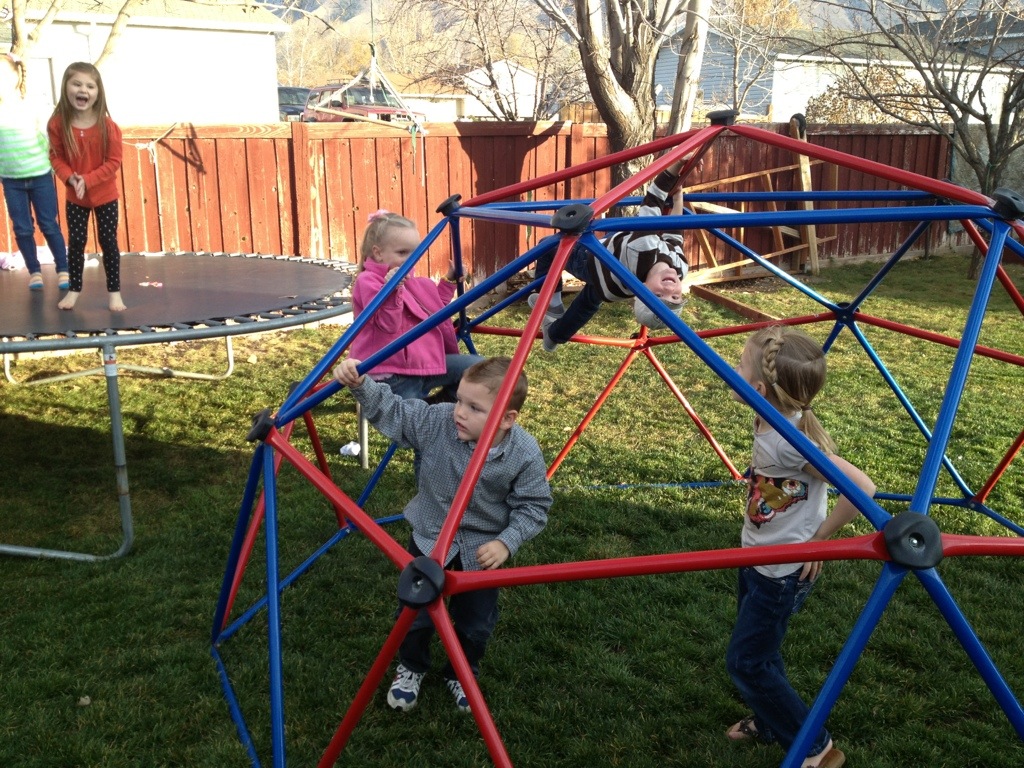 We had a birthday party for my 3rd child. We invited her church class and school class. (I hope I didn’t leave anyone out!) They played on the zip line, trampoline and jungle gym.
