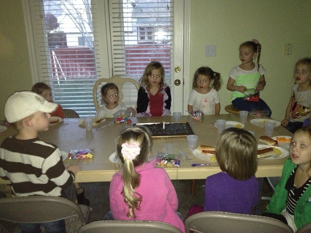 She had a nice birthday party and the kids were great! Corom and I couldn’t have done it without Mike and Amy Fullmer!!! They stayed and hung out a little while after (until the girl’s bedtime).