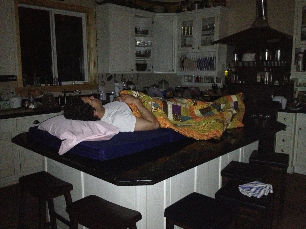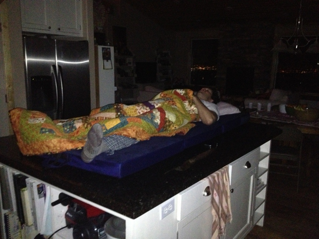 I did not get up in time to run with the other ladies… It was hard for me to get up period this morning. We all stayed the night at my mother in laws and I slept on the couch. Corom slept on the kitchen counter… Corom and his brother thought it would be funny when their mom came out…