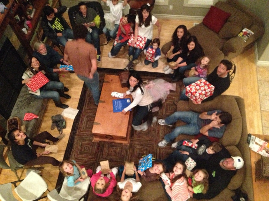We came home and had our “Christmas” pass around exchange. We read the Christmas story, The Night Before Christmas, and every “and” and “the” we pass our gift around. At the end we open up our gifts.