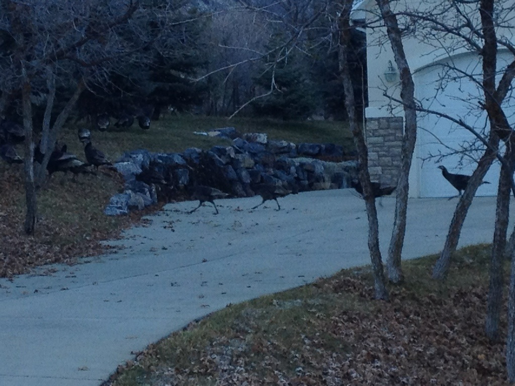 I did not get up on time to meet the ladies this morning so I stepped out of my mother-in-law’s house and ran straight up the hill (in Woodland Hills). The 1st mile up I ran into a bunch of turkeys… All I thought was, these turkeys are lucky they survived through this Thanksgiving…