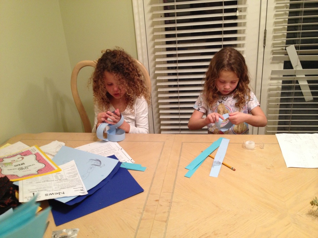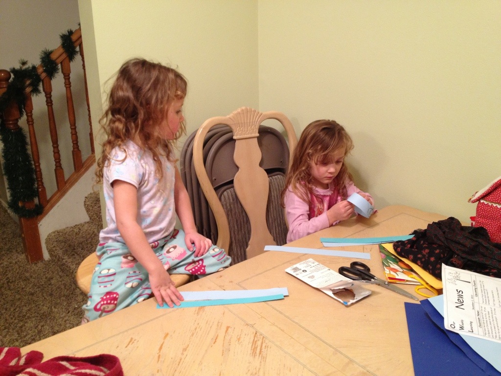 After practice I had scouts at my house and then the girls and I did our Christmas activity (Corom had to work late tonight). We made the Christmas countdown chain.