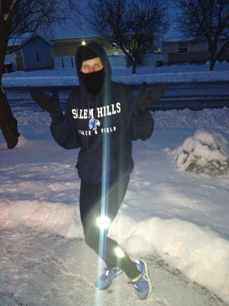 I met up with Mac and Beth this morning. It read that it was 15 degrees out. It was cold!!! I went out for 1:10.24. I put in about 8 1/2 or something around that. π (I don’t run with a Garmin or anything… Just the old school stop watch). I felt great and running in the snow was surprisingly refreshing! I had good grip on my shoes.. I did take off to run a mile hard and did it another time but not quite as long as the 1st time during the middle of our run. I just had a lot of energy this morning and felt like I needed to push it for a little while. I really, really enjoyed the run this morning (maybe because I was a little more prepared for the cold and slight wind).
