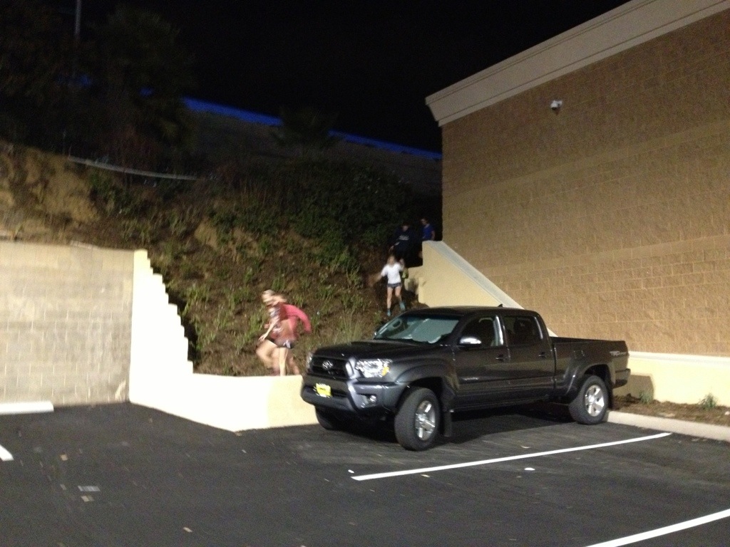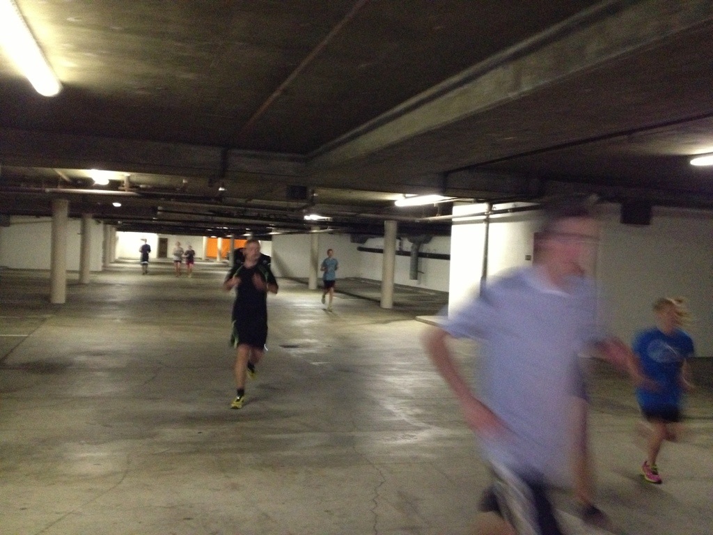 We ran down ramps and through parking garages…