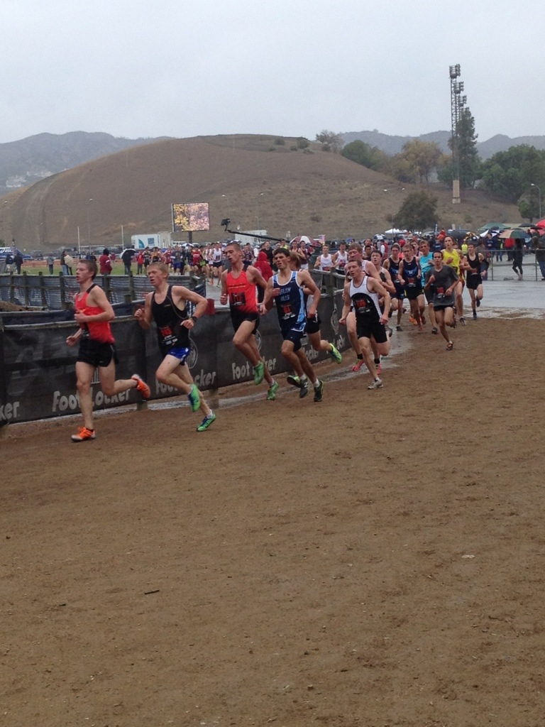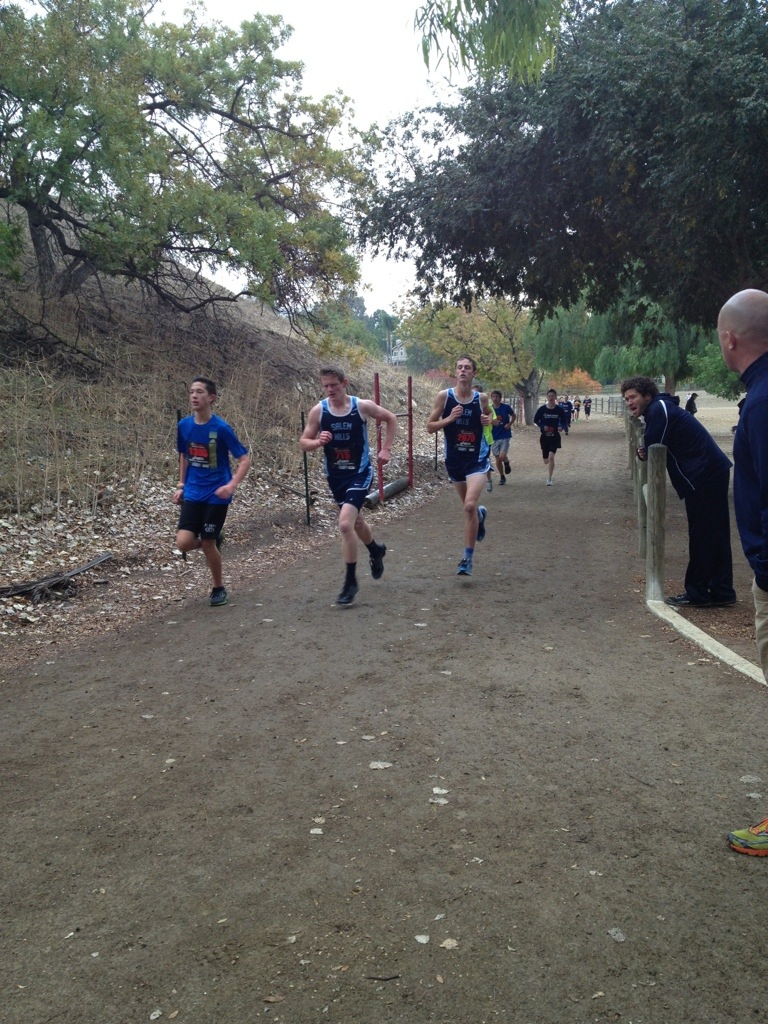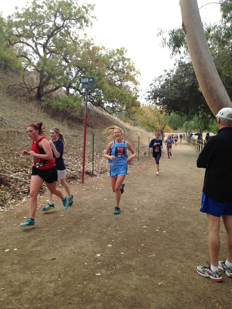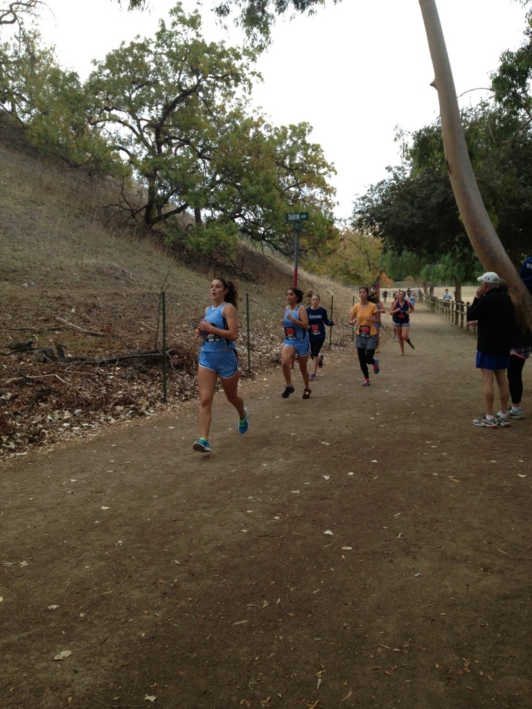 As we loaded the bus this morning to head over to Mt. Sac, we noticed a room full of 4 girls were missing. It was 6:45 at the time and my race started at 7:30. I ran upstairs and knocked on their door… Um yeah… I woke them up. We left at 5 after 7. I was able to warm up for 5 min before my race started. We had our freshman/sophomore race 15 minutes after mine started… They were a little nervous! We actually bumped them back into another race but for me I had to go. It went well…