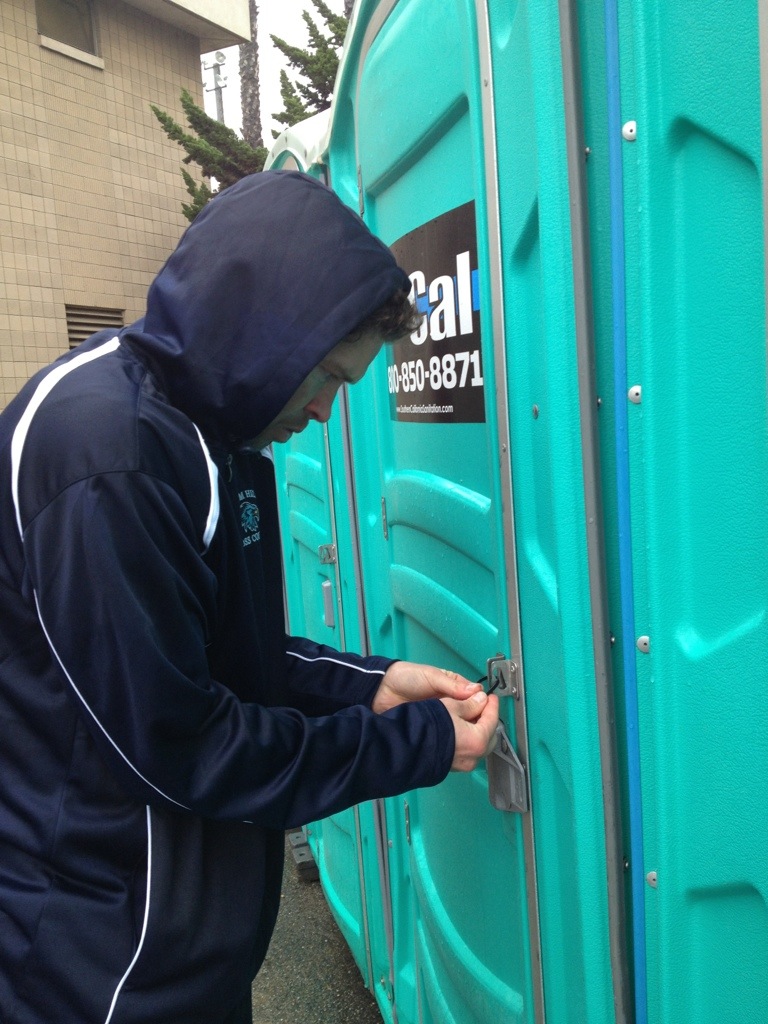 Oh and of course Corom was up to his usual pranks at the race. Coach Thompson was in this porta-pottie…