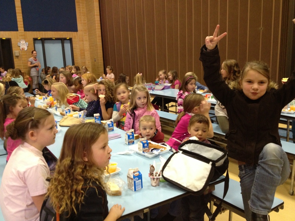 Earlier today Corom and I (and my 3 younger girls and the 2 kids I babysit), went to the elementary school to help out with the classrooms and lunch. I helped out with my oldest daughter’s class. I took over for her class because the teachers and faculty had an hour party/lunch.