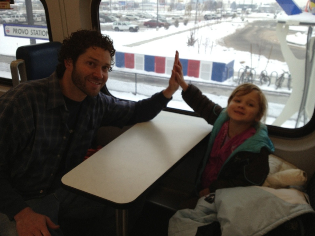 We made it back and tried to keep the girls entertained while on the Frontrunner. They were so tired until we got onto the train. They got a 2nd wind or something. :/