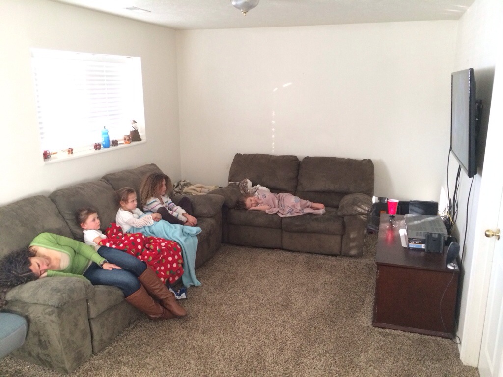 We went to lunch… Subway. The girls were really good! 🙂 After Aunt Georgia left, the girls and I went shopping for their dad (Corom)… Yeah… I didn’t technically get him anything for under the Christmas tree. I have a couple of gifts for him but nothing to open. I will let you know in a little bit what I got him and the rest will be for tomorrow. We delivered the rest of our neighbor’s gifts and then came home. I told the girls they could watch a movie while I took care of Christmas “stuff” (wrapping presents). They were excited because I only allow 2 movies a week (I know weird)… Well this is how far I got…