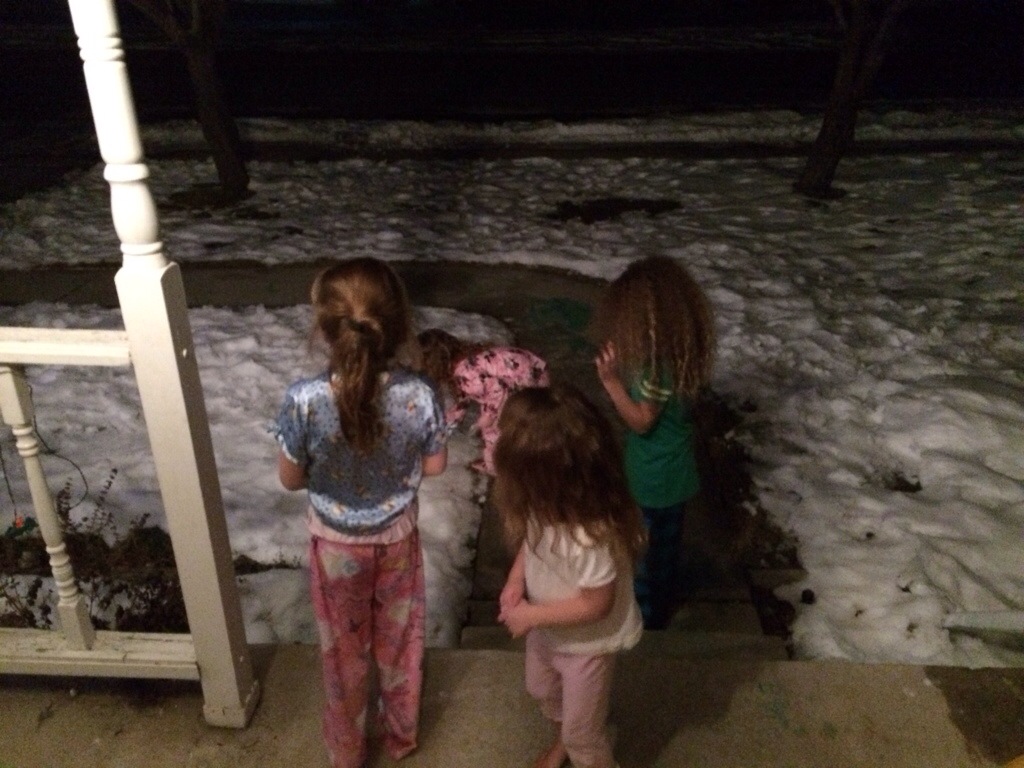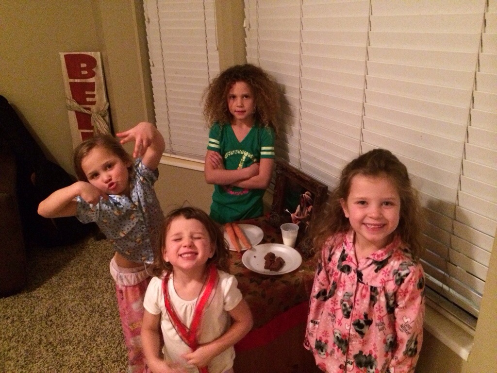 The girls then opened up one of their gifts (from A. Georgia), got the goodies ready for Santa, and spread reindeer food outside…