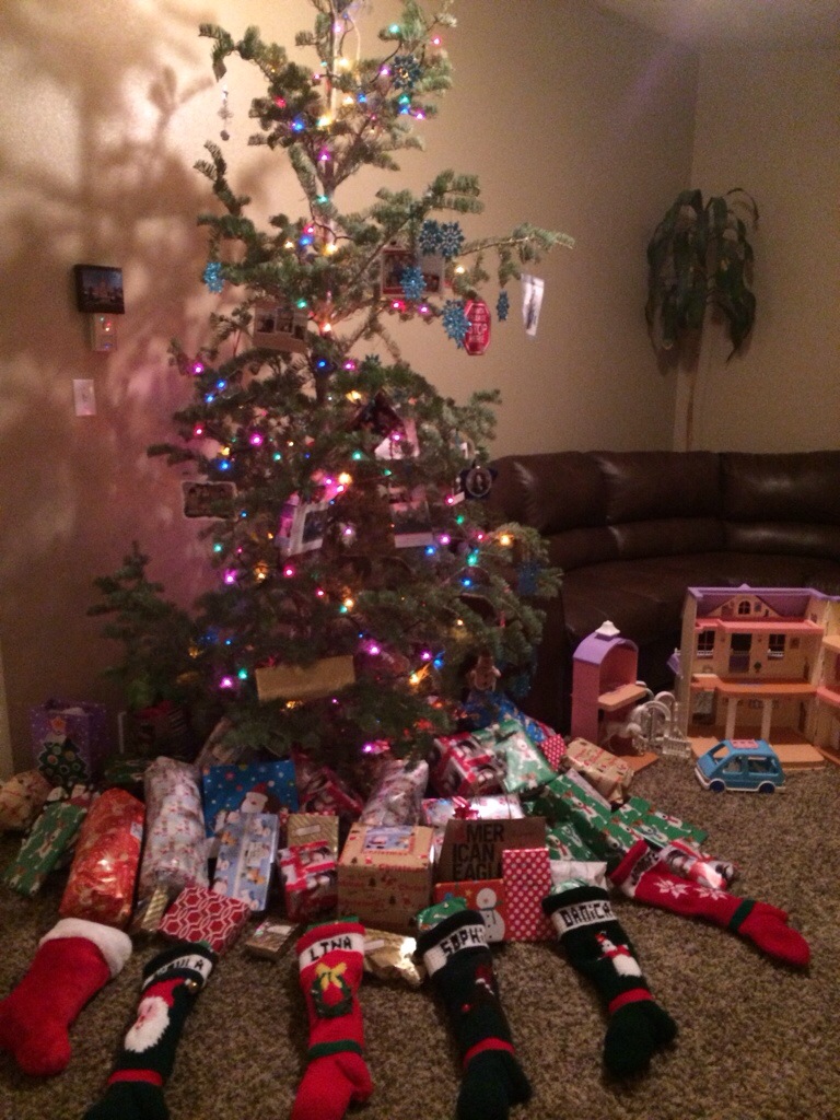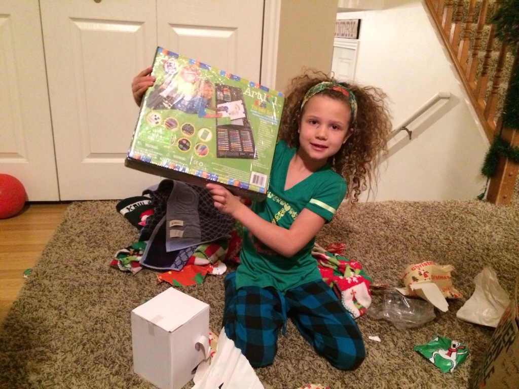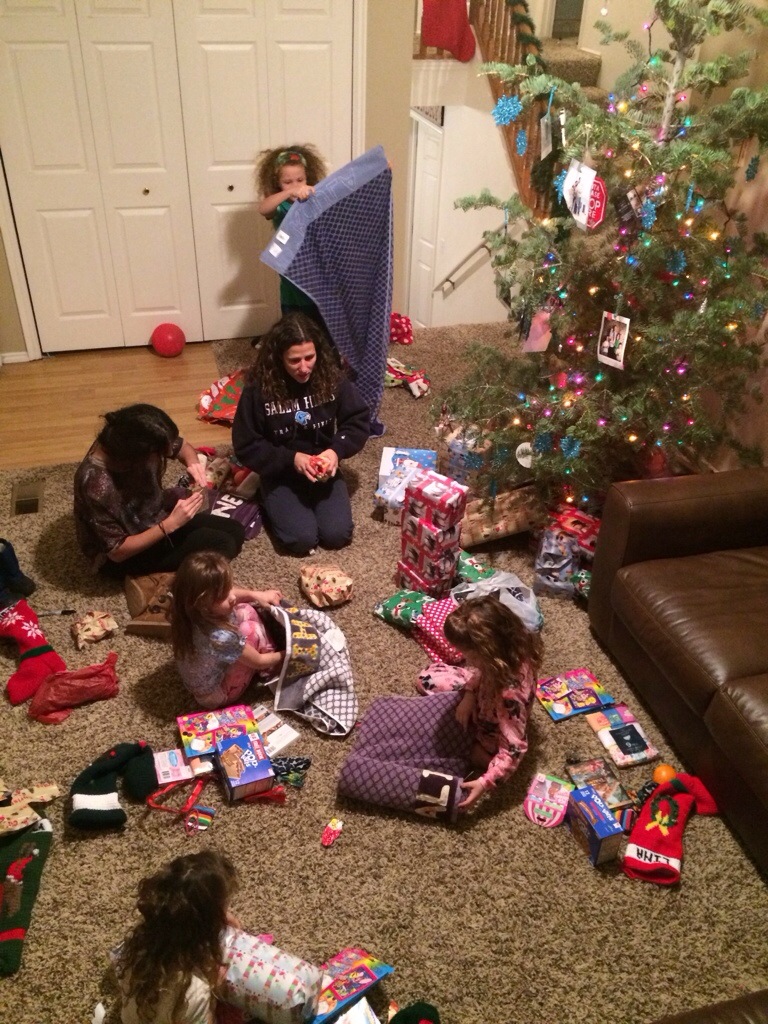 5:30 a.m. came around too soon. I told the girls as they all ran into our room that we were not going down for another 1/2 an hour. By the time we got Z (our foreign exchange student) up, we were ready to begin our present opening by 6:15.