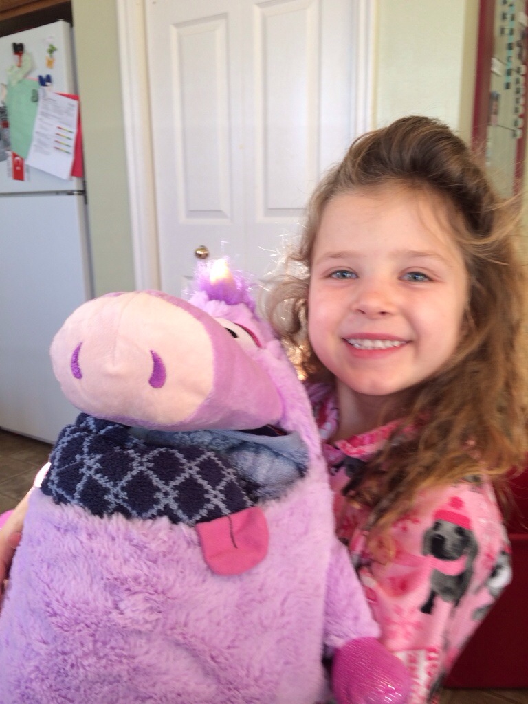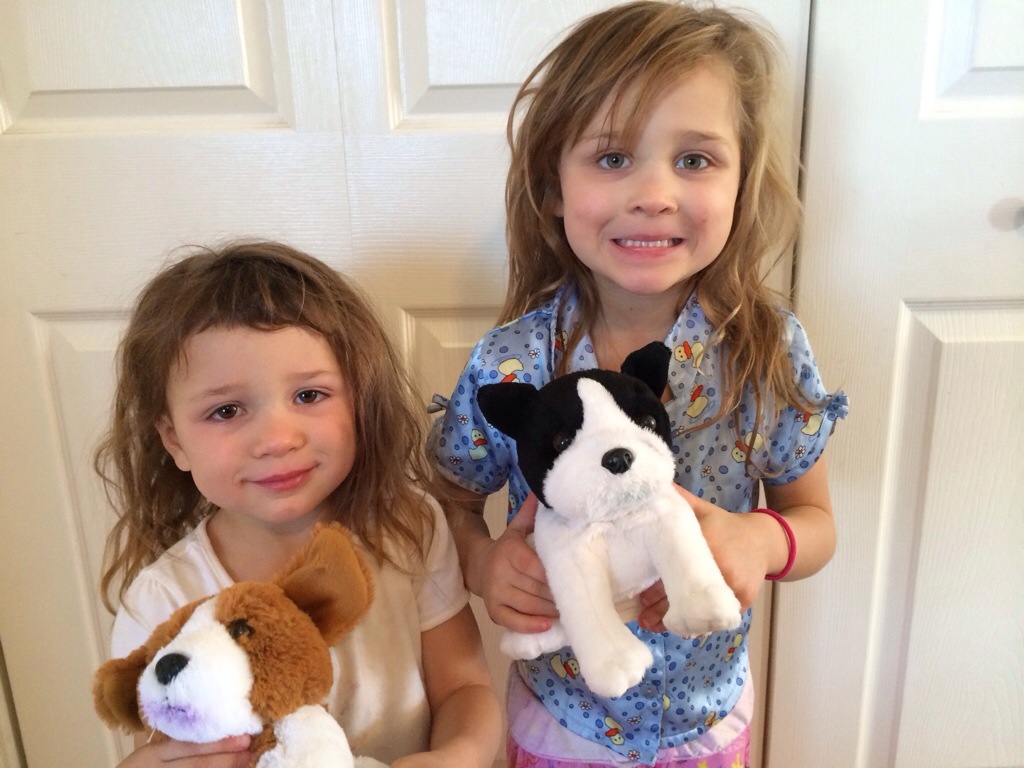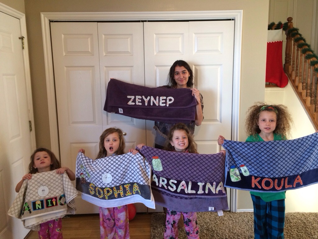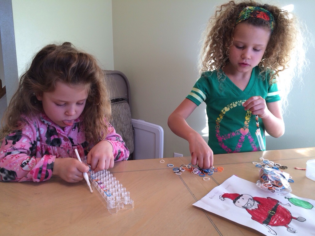 Grandma and grandpa Hansen got the girls the bracelet looms and bands and little dogs that move around. G-goat gave all the girls their own towels.