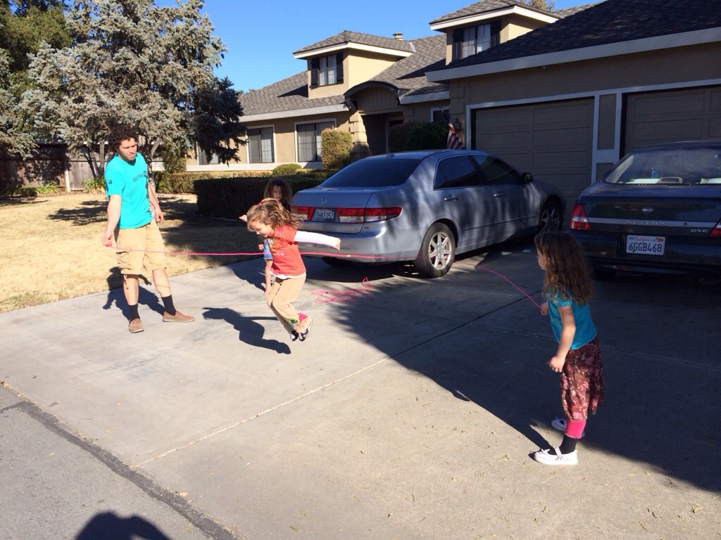 That is me being pushed off one of the toys there… It was kind of fun riding one of those.