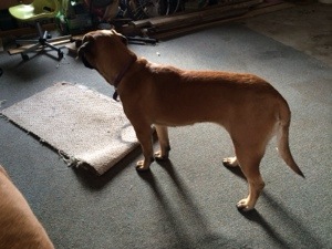 So far Kitty our English Mastiff looks OK… She is a little slow moving around but that is to be expected after being hit and then run over by a truck. :/