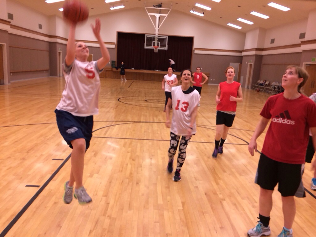 My 3rd child tried climbing up and as it was falling over she jumped off. She landed in the corner… Unfortunately, our fish tank was on top and shattered the side and the bottom. There are little rocks and glass all over in that corner. (It is now 9 pm and neither Corom and I have even attempted to pick all that up.) 🙂 I am grateful she wasn’t hurt. It freaked me out!  Once I found out all the kids were OK from the dresser falling and glass shattering, my impatience level dropped. :)  I was not to happy about that. Honestly… it is always something here with my kids! Later the girls went to a birthday party and then we had people over for dinner. After dinner the ladies and I went and played basketball for our church. Our husbands came (with the kids) for moral support.