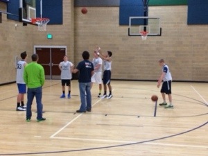 I came home, hurried and got ready and got the girls ready and went to Corom’s basketball game (he is a coach for a freshman/sophomore city league team). He coaches with Mike Fullmer and Travis Barney.