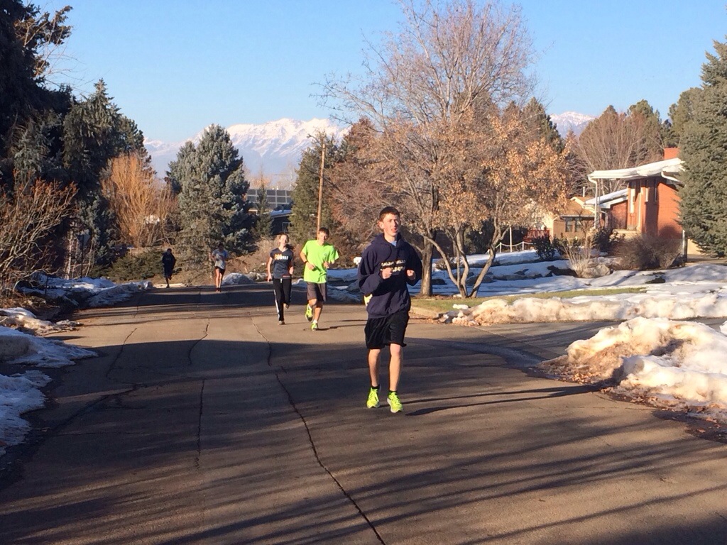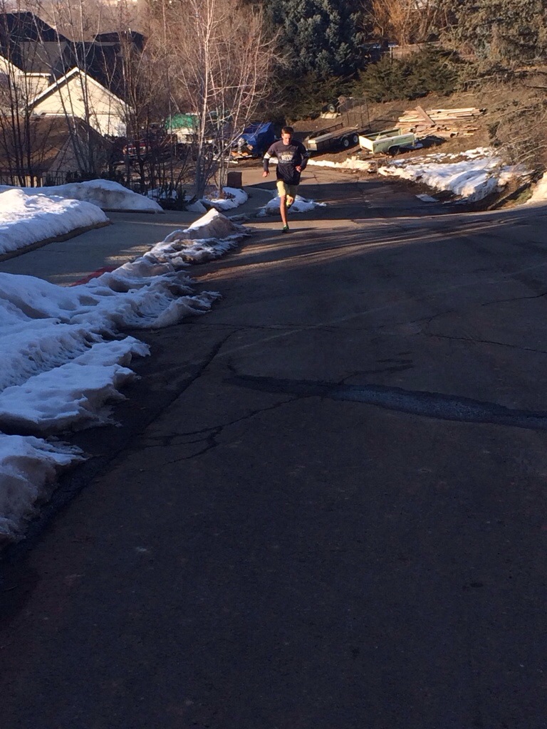 A few neighbors came over and hung out for a while (all on coincidence)… It was nice, so we just let the kids play. I, then, had to leave for in-door track practice. My girls and I loaded up and headed to practice. I sent the kids on a 1 1/2 mile warmup; then a hill workout of about 2 to 3 miles (some ran 2 miles worth and the others 3); with a 2 mile cool down.
