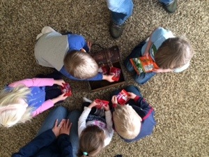 I had Joy School at my house again today. We worked in our books, had story time, snack time…