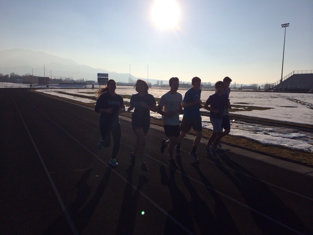 After their agilities and core, we split off into our groups. I took the distance runners and sent them on a 5 mile easy run. They finished off on the track.