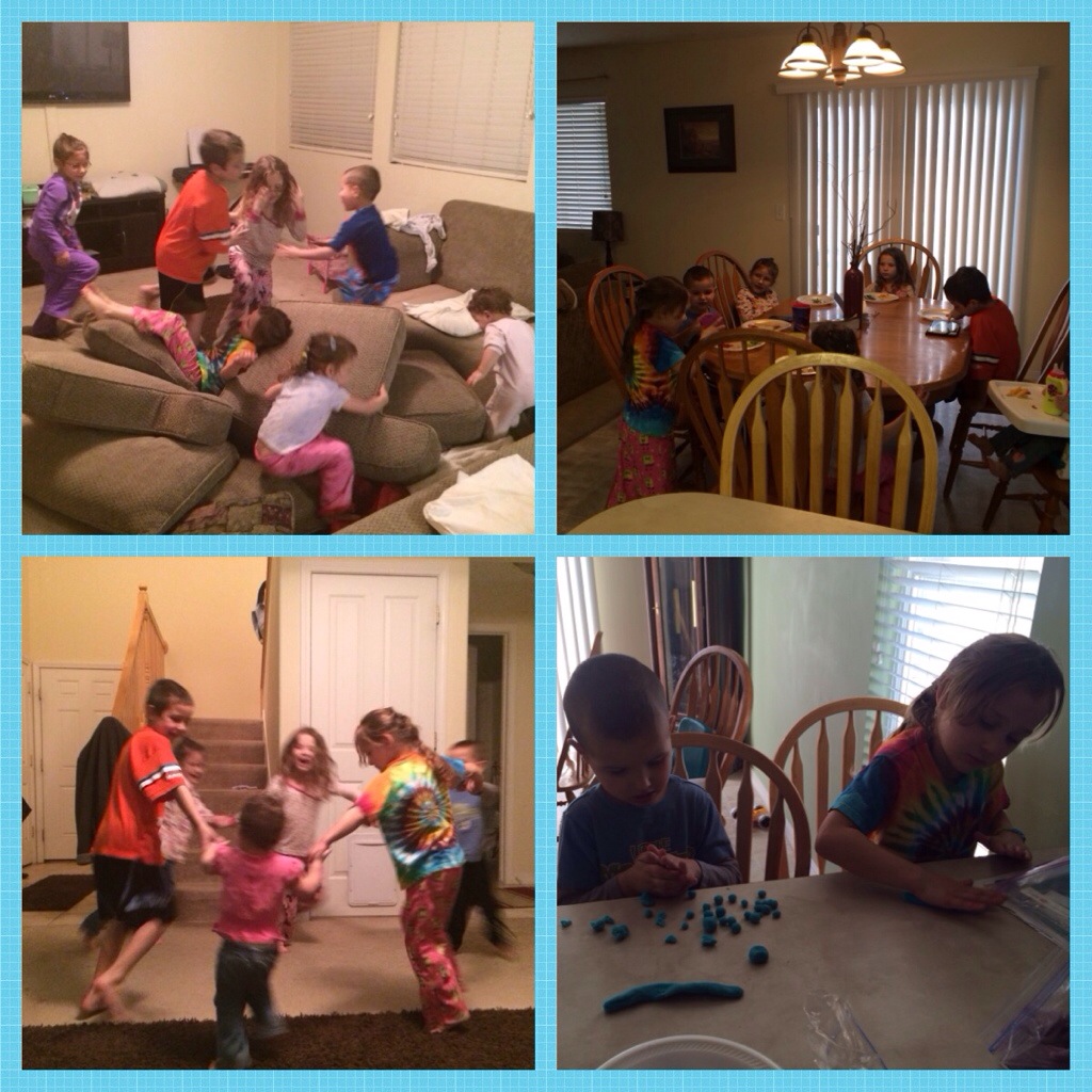 Church was good and the girls were good. We had a nice lunch together as a family and then I (and my 3 younger girls) headed up to my sister’s to watch my nieces and nephews so my mom (she is watching them for the week) could take a break and visit her sister and other relatives in Salt Lake. It was a chaotic night but I didn’t mind it. I sat back and watched and every once in a while I would intervene. π The kids loved it…