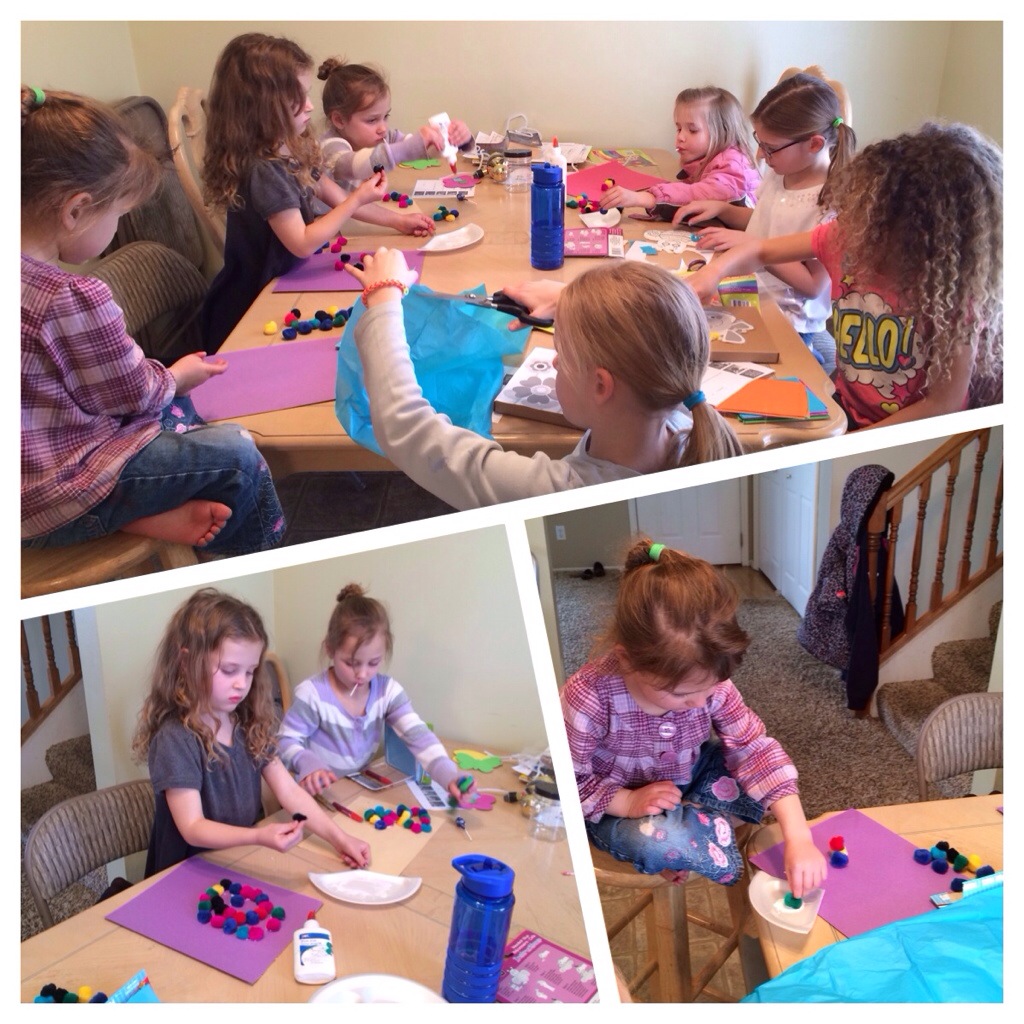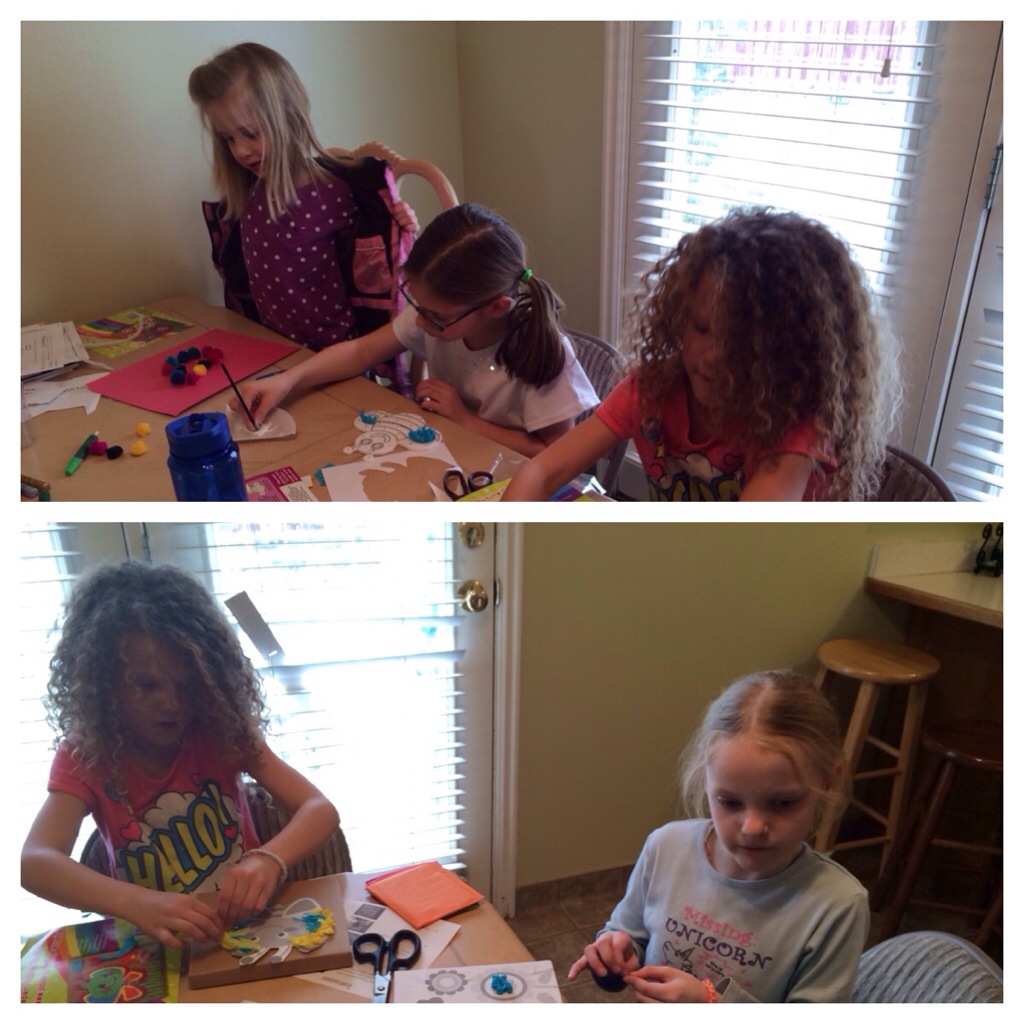 After school I allowed the girls to have their friends come… We worked on crafts and ate cookies. It was a huge mess but they were entertained for a good hour (and quiet)!