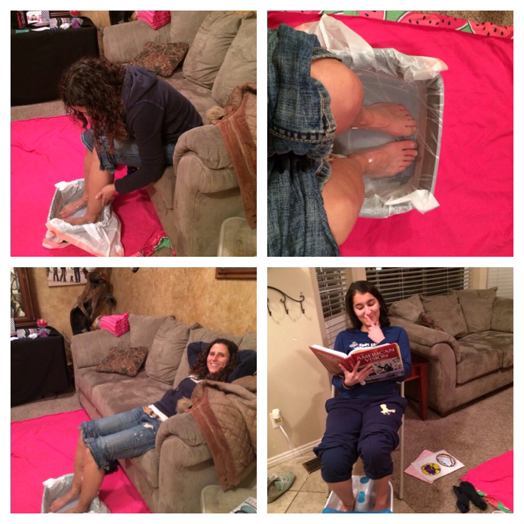 My neighbor came over for 45 minutes (after the girls were in bed) so I could go support another neighbor with a business (Posh) she is starting out with. I found out we were going to be pampered. I wish I had longer. 😉