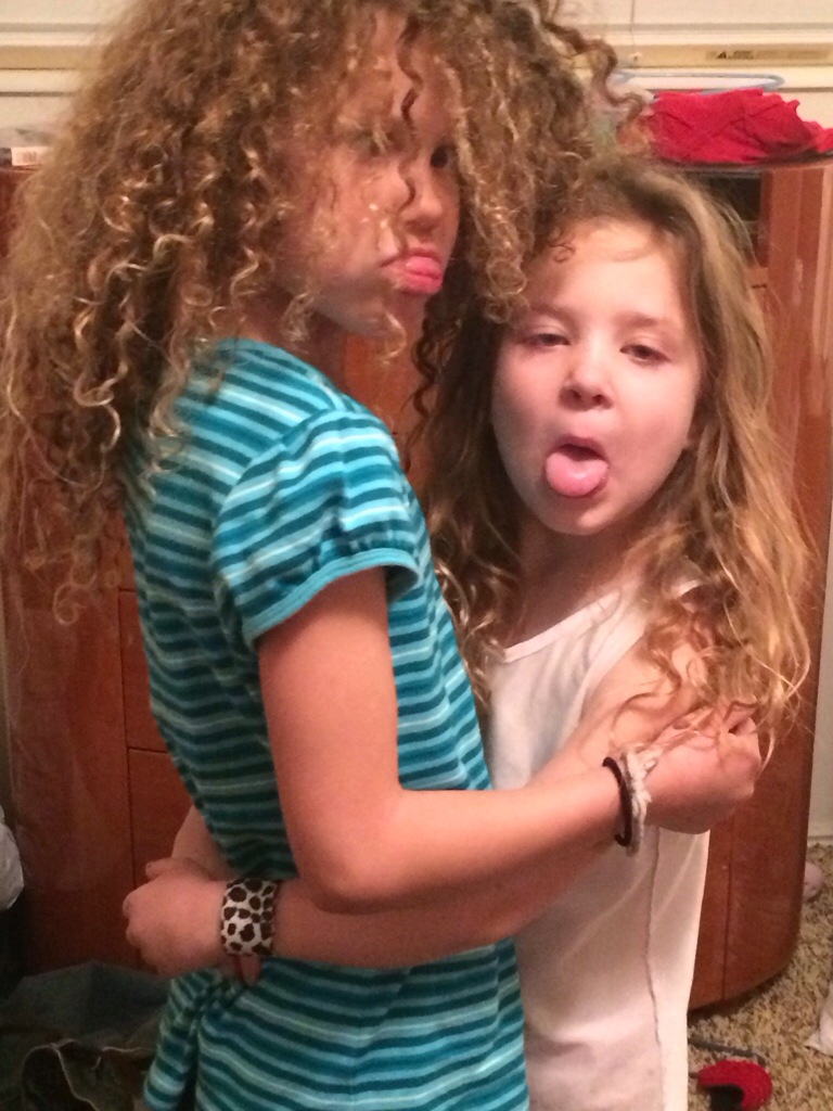 My girls started to battle it out today so Corom and I made them hug each other for 1 minute. It was the longest minute.